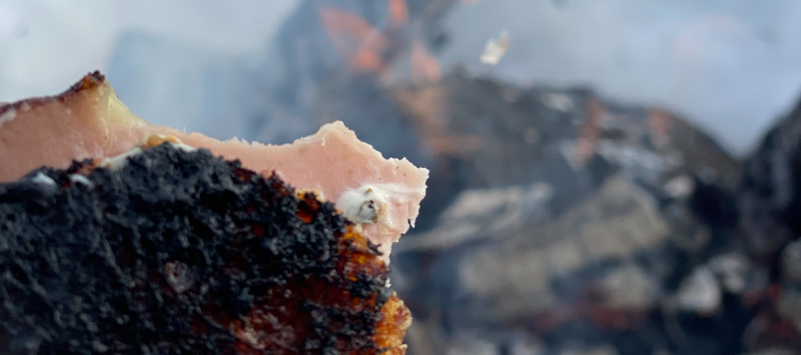 Jaja. Sultne barn gir utålmodige sjeler, og her ble den stakkars toasten utsatt for vel mye varme. Men i utgangspunktet er det å pakke inn matpakken i aluminiumsfolie en utmerket idé, nesten samme hva du har på maten; brunost, leverpostei, brie, smøreost, eller salami både med og uten banan. Du trenger ikke noe stort bål for å varme litt på brødskiven, og du tar umiddelbart turopplevelsen til et nytt nivå. Litt feiling må man regne med, men du reddes inn av at alt smaker godt på tur.