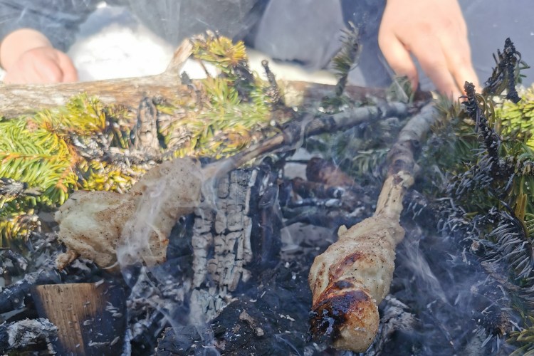 Hold kanelpinnesnurren over glørne i bålet. Her gjelder det å finne ut hvor i bålet det er perfekt steketemperatur. Er det for varmt vil sukkeret ta fyr og bli brent. Pass på at barna har noe mat i magen fra før, og smør dere med tålmodighet. Denne godbiten er verdt å vente på. Har du laget en stor porsjon kan du gjerne begynne med et par snurrer uten sukker og kanel. Det roer sultne små mager. Velbekomme!