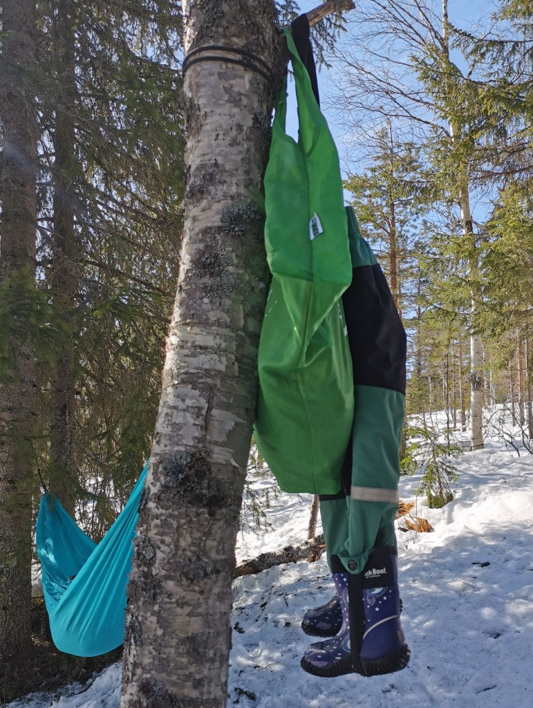 - Godt isolerende underlag som saueskinn, liggeunderlag eller et tykt ullteppe. Varmetapet er stort i hengekøye, så kle barnet ditt varmere enn for eksempel i vogn.
